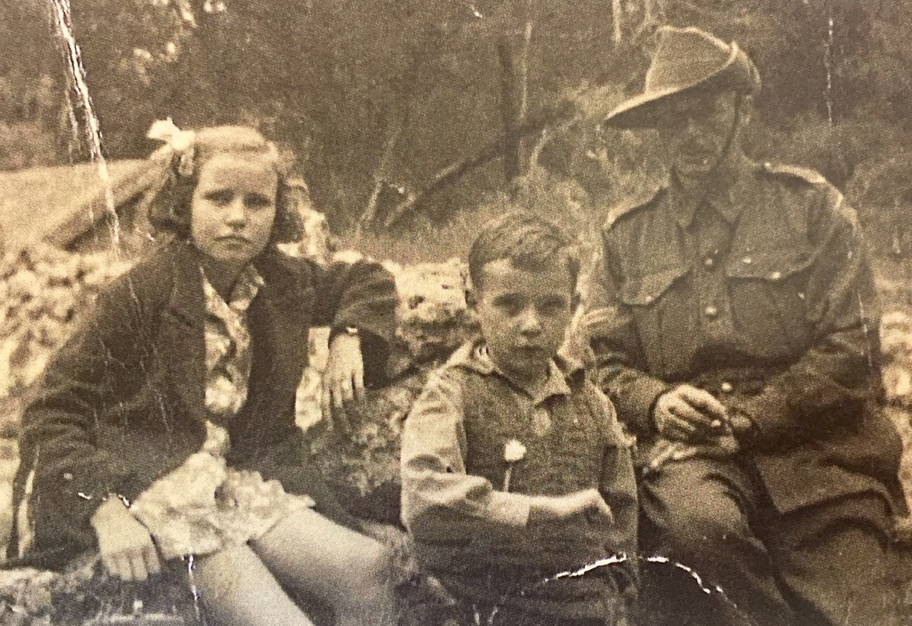 Photos left: Carol, Tony and Bill Darbyshire AIF c. 1940, and right: Bill Darbyshire, RAAF, 1941 (Defence Force records NAA).