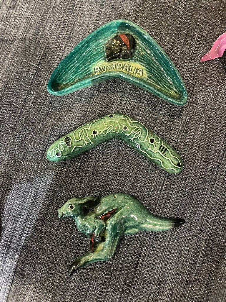 At the factory they produced over 150 different items which combined aesthetic interests with the reality of the marketplace. As well as ‘functional items’, like the well-known salt and pepper shakers (60 styles of animals, fruit and flowers- taxed at a lower rate) Darbyshire Pottery also produced ‘novelty items’, such as the Urchin Series (designed by Paul Rigby in 1956) and ‘Dr Livingstone and the Cannibal’, and ‘decorative items’ (which were taxed at a higher rate). The pottery was sold throughout Australia and exported to New Zealand and Papua New Guinea.